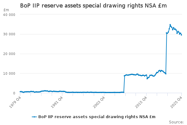 Download this time seriesBoP IIP reserve assets special drawing rights NSA £m