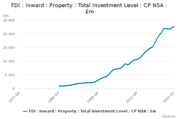 Download this time seriesFDI : Inward : Property : Total Investment Level : CP NSA : £m