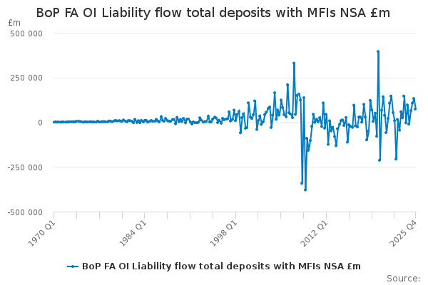 Download this time seriesBoP FA OI Liability flow total deposits with MFIs NSA £m