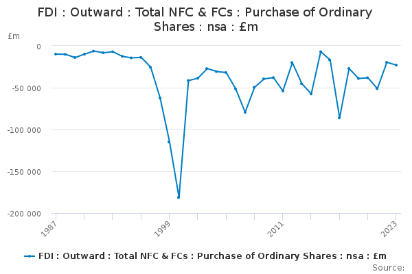 Download this time seriesFDI : Outward : Total NFC & FCs : Purchase of Ordinary Shares : nsa : £m