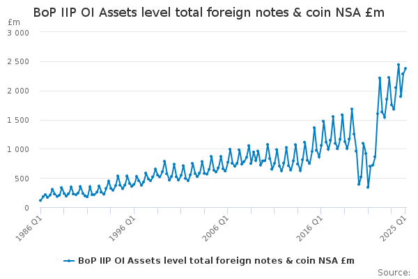 Download this time seriesBoP IIP OI Assets level total foreign notes & coin NSA £m