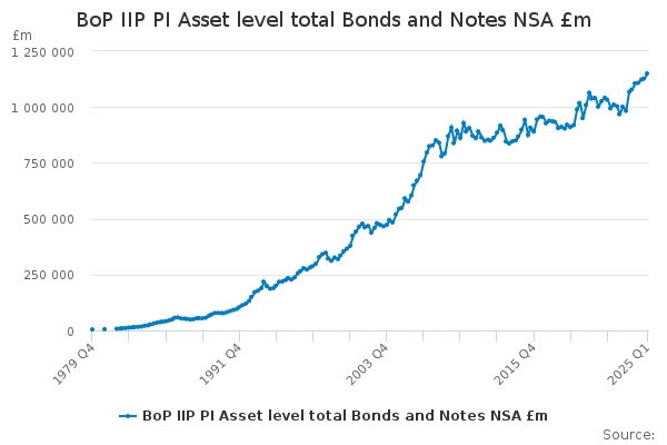Download this time seriesBoP IIP PI Asset level total Bonds and Notes NSA £m