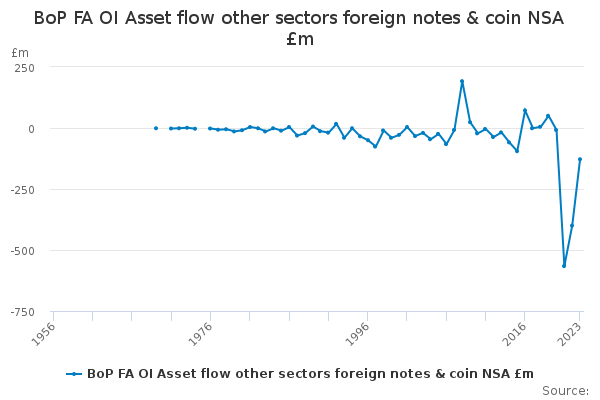 Download this time seriesBoP FA OI Asset flow other sectors foreign notes & coin NSA £m