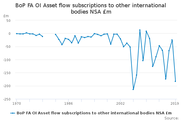 Download this time seriesBoP FA OI Asset flow subscriptions to other international bodies NSA £m
