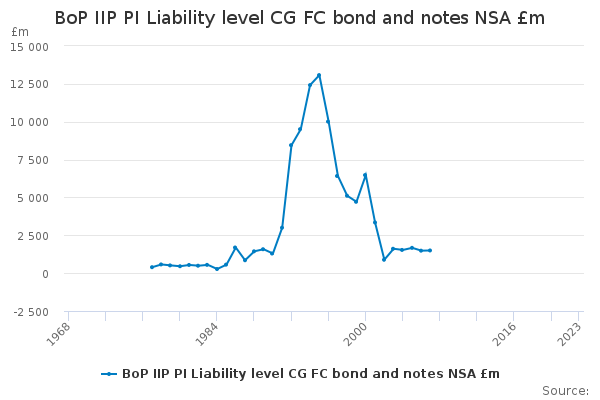 Download this time seriesBoP IIP PI Liability level CG FC bond and notes NSA £m