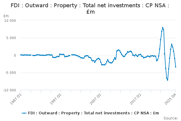 Download this time seriesFDI : Outward : Property : Total net investments : CP NSA : £m