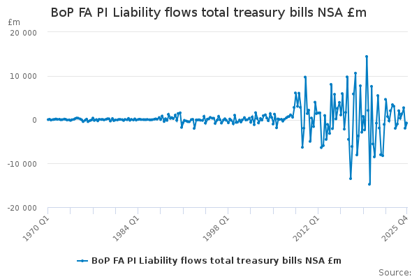 Download this time seriesBoP FA PI Liability flows total treasury bills NSA £m