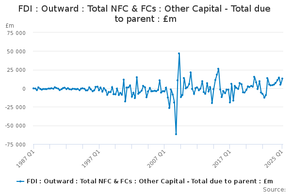 Download this time seriesFDI : Outward : Total NFC & FCs : Other Capital - Total due to parent : £m