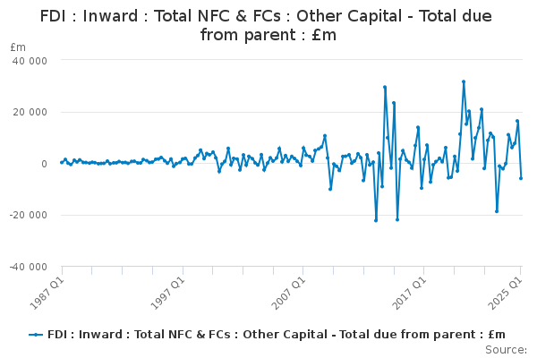 Download this time seriesFDI : Inward : Total NFC & FCs : Other Capital - Total due from parent : £m