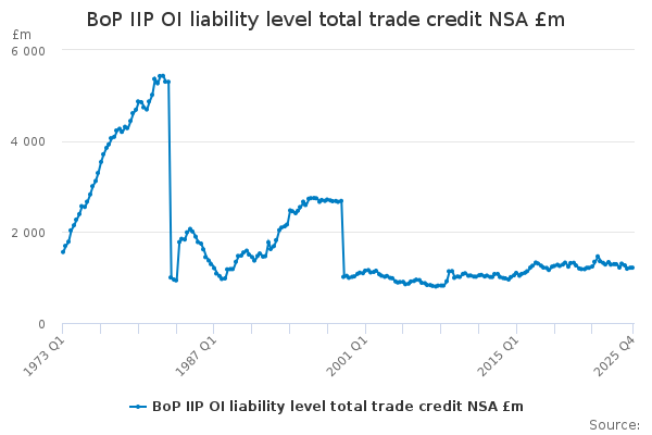 Download this time seriesBoP IIP OI liability level total trade credit NSA £m