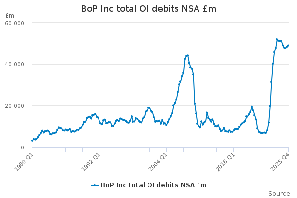 Download this time seriesBoP Inc total OI debits NSA £m