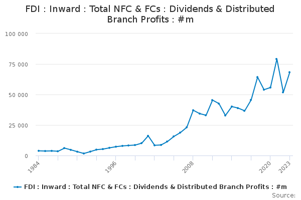 Download this time seriesFDI : Inward : Total NFC & FCs : Dividends & Distributed Branch Profits : #m