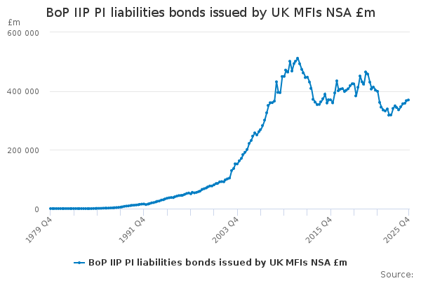 Download this time seriesBoP IIP PI liabilities bonds issued by UK MFIs NSA £m