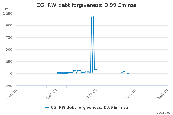 Download this time seriesCG: RW debt forgiveness: D.99 £m nsa