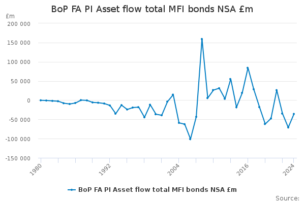 Download this time seriesBoP FA PI Asset flow total MFI bonds NSA £m