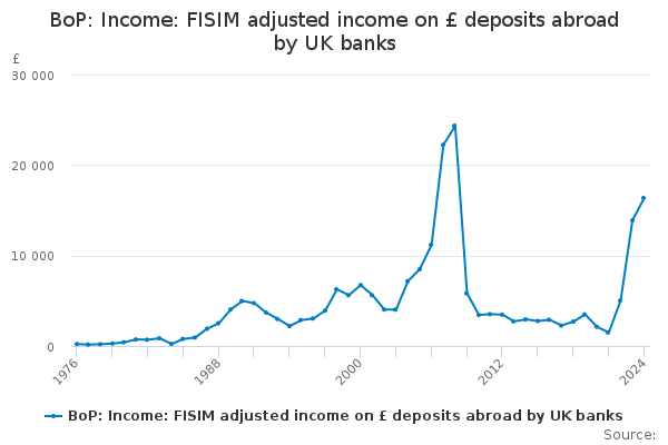 Download this time seriesBoP: Income: FISIM adjusted income on £ deposits abroad by UK banks