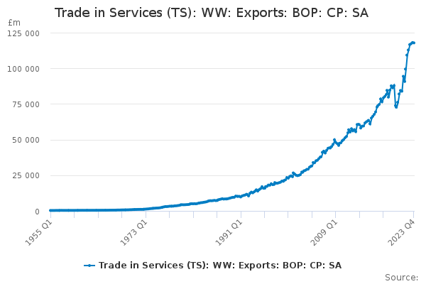 Download this time seriesTrade in Services (TS): WW: Exports: BOP: CP: SA