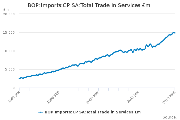 Download this time seriesBOP:Imports:CP SA:Total Trade in Services £m