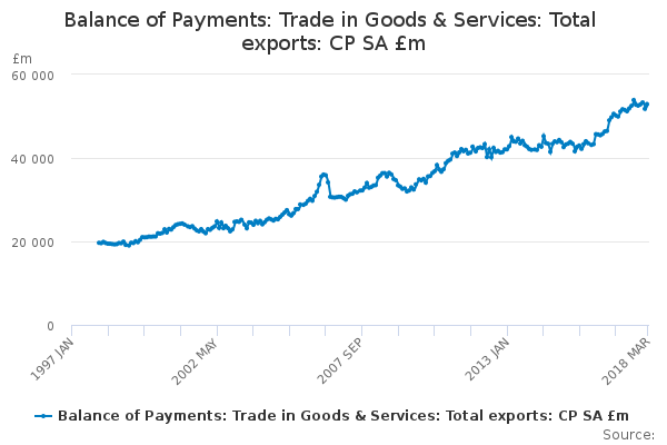 Download this time seriesBalance of Payments: Trade in Goods & Services: Total exports: CP SA £m