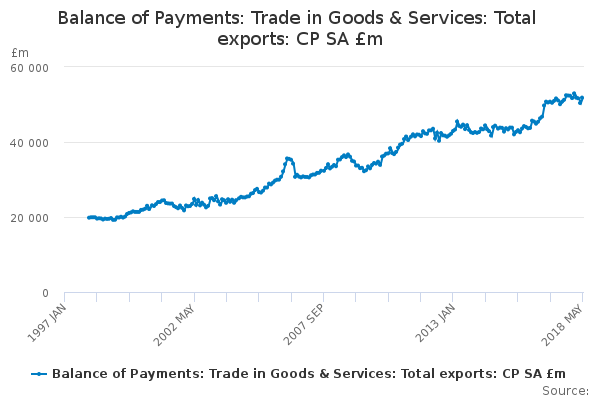 Download this time seriesBalance of Payments: Trade in Goods & Services: Total exports: CP SA £m
