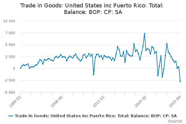 Download this time seriesTrade in Goods: United States inc Puerto Rico: Total: Balance: BOP: CP: SA