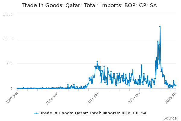 Download this time seriesTrade in Goods: Qatar: Total: Imports: BOP: CP: SA