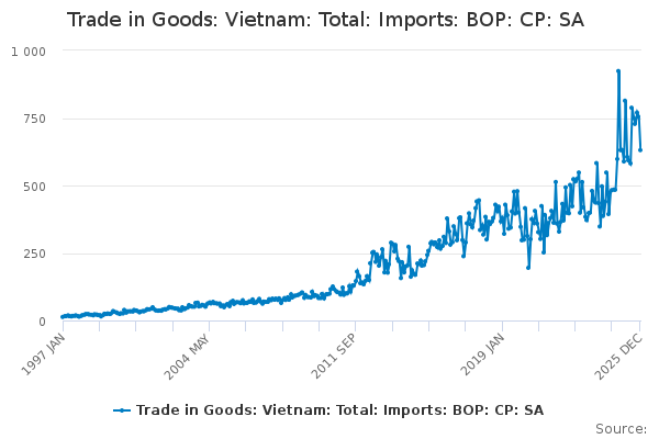 Download this time seriesTrade in Goods: Vietnam: Total: Imports: BOP: CP: SA