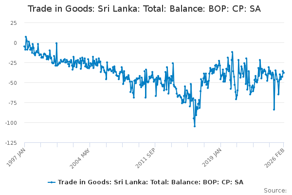 Download this time seriesTrade in Goods: Sri Lanka: Total: Balance: BOP: CP: SA