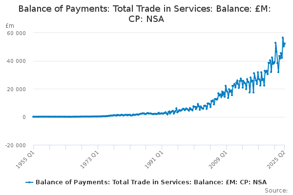 Download this time seriesBalance of Payments: Total Trade in Services: Balance: £M: CP: NSA
