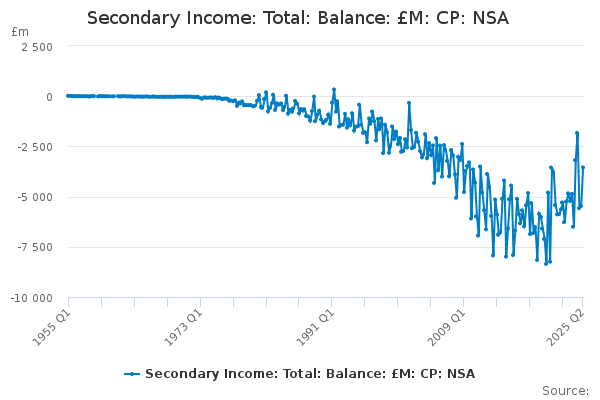 Download this time seriesSecondary Income: Total: Balance: £M: CP: NSA