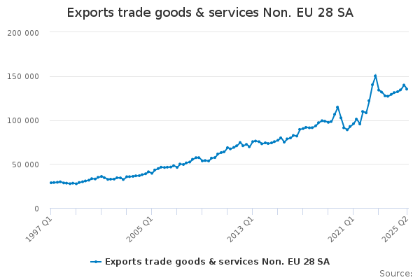 Download this time seriesExports trade goods & services Non. EU 28 SA