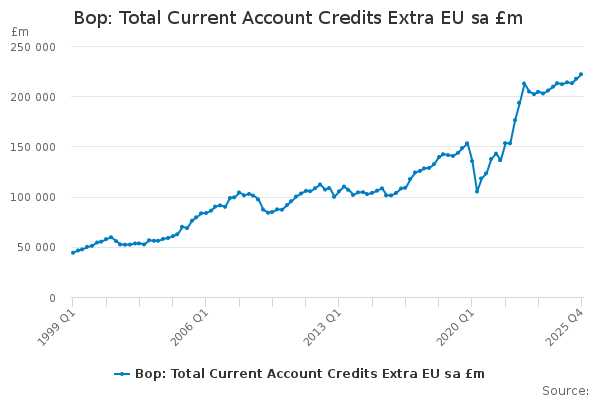 Download this time seriesBop: Total Current Account Credits Extra EU sa £m
