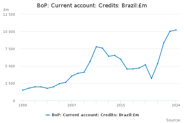 Download this time seriesBoP: Current account: Credits: Brazil:£m