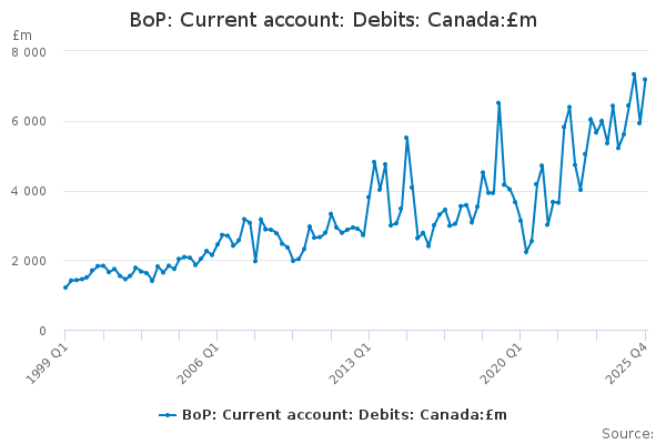 Download this time seriesBoP: Current account: Debits: Canada:£m