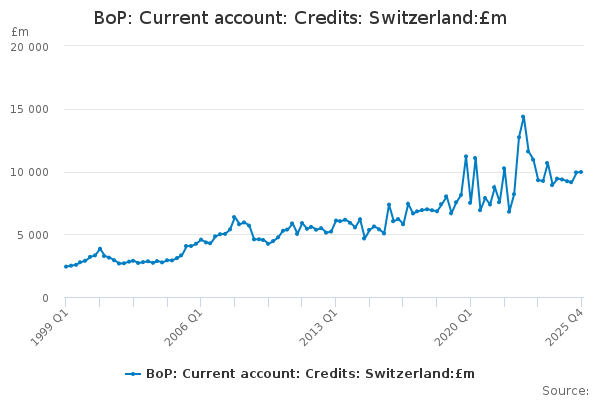 Download this time seriesBoP: Current account: Credits: Switzerland:£m