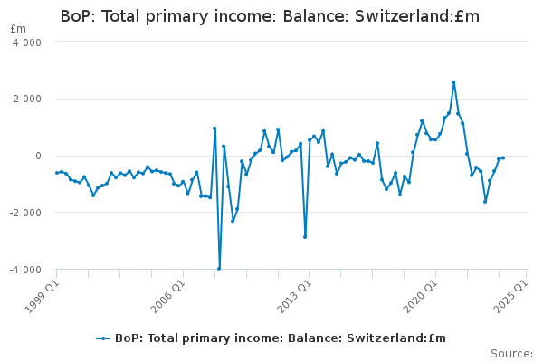 Download this time seriesBoP: Total primary income: Balance: Switzerland:£m
