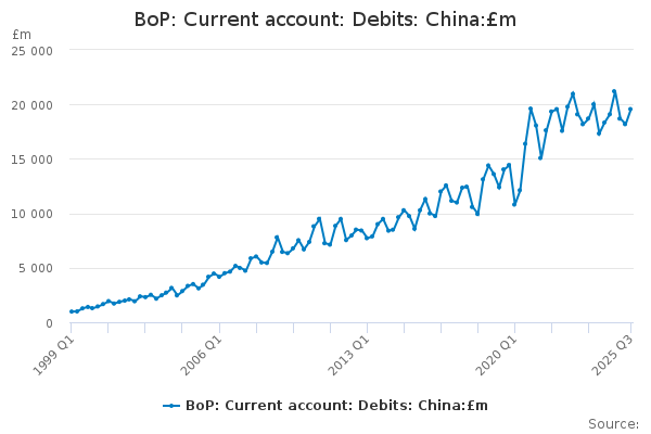 Download this time seriesBoP: Current account: Debits: China:£m