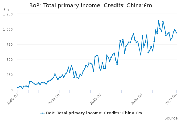 Download this time seriesBoP: Total primary income: Credits: China:£m