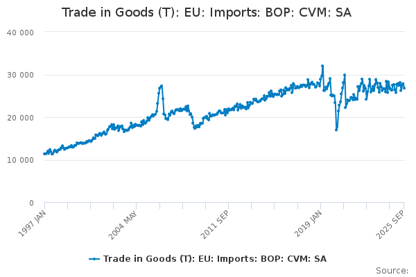 Download this time seriesTrade in Goods (T): EU: Imports: BOP: CVM: SA