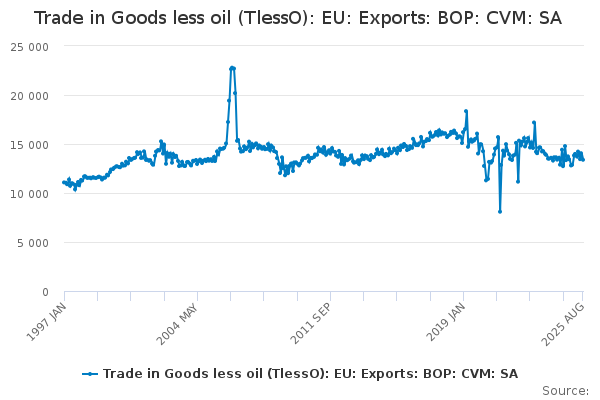 Download this time seriesTrade in Goods less oil (TlessO): EU: Exports: BOP: CVM: SA