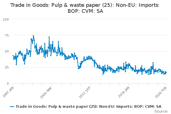 Download this time seriesTrade in Goods: Pulp & waste paper (25): Non-EU: Imports: BOP: CVM: SA