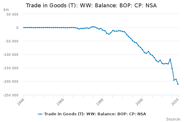 Download this time seriesTrade in Goods (T): WW: Balance: BOP: CP: NSA