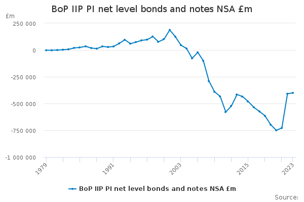 Download this time seriesBoP IIP PI net level bonds and notes NSA £m