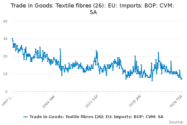Download this time seriesTrade in Goods: Textile fibres (26): EU: Imports: BOP: CVM: SA