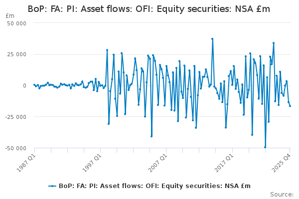 Download this time seriesBoP: FA: PI: Asset flows: OFI: Equity securities: NSA £m