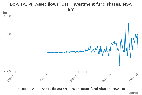 Download this time seriesBoP: FA: PI: Asset flows: OFI: investment fund shares: NSA £m