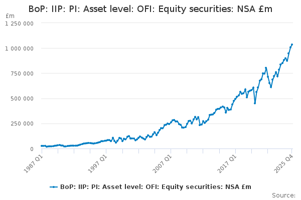 Download this time seriesBoP: IIP: PI: Asset level: OFI: Equity securities: NSA £m