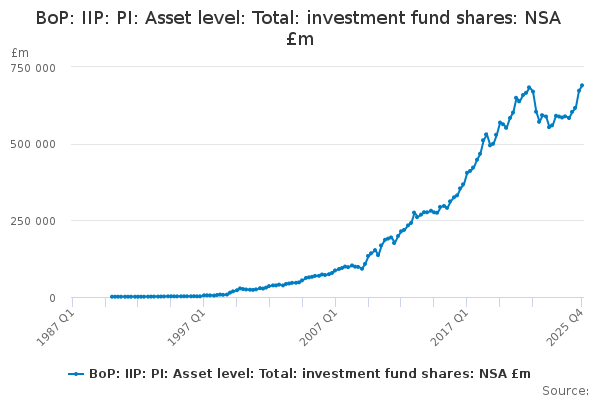 Download this time seriesBoP: IIP: PI: Asset level: Total: investment fund shares: NSA £m