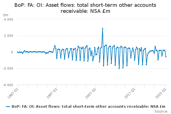 Download this time seriesBoP: FA: OI: Asset flows: total short-term other accounts receivable: NSA £m