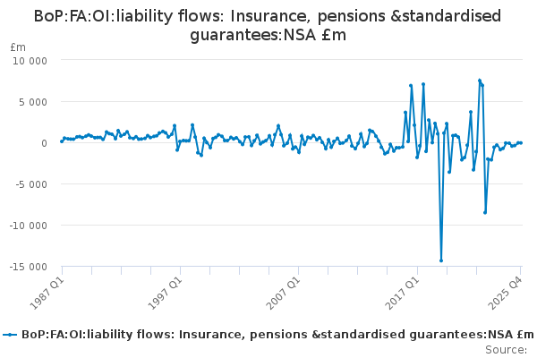 Download this time seriesBoP:FA:OI:liability flows: Insurance, pensions &standardised guarantees:NSA £m